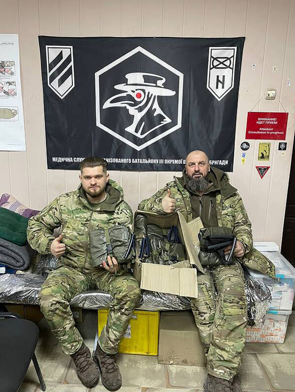 Eine neue Lieferung von Tragen an die Sanitätseinheit der berühmten Sturmbrigade