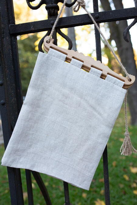 Leinentasche aus Haithabu mit hölzernen Griffen