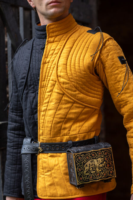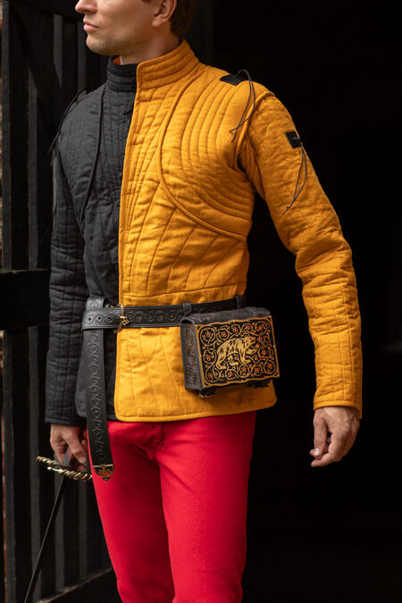 Ein ausgewogener mittelalterlicher Look ohne Tasche oder Beutel ist kaum vorstellbar. In der Zeit der Kleidung ohne Taschen spielten sie im Alltag eine zentrale Rolle, unabhängig von sozialer Schicht oder Beruf. In dieser geräumigen Tasche können Sie alles Wichtige stilvoll transportieren! Dank der rechteckigen Form mit Zwickel finden die meisten Handys, Schlüssel und ein kleines Portemonnaie bequem Platz.
