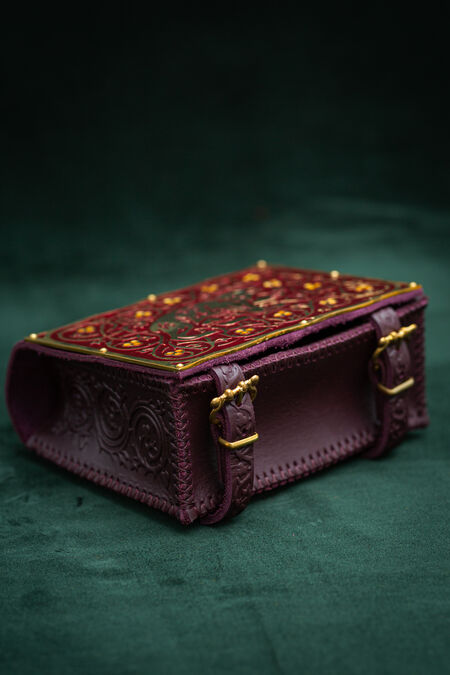 Hochwertiges Naturleder ist sehr strapazierfähig und trotzt den Elementen – außer beim Schwimmen sind Ihre Habseligkeiten sicher wie in einem Campingzelt. Das auffälligste und gesprächsförderndste Detail der Gürteltasche ist jedoch die Kunstplatte. Messing und die Auswahl an Emaillefarben erzeugen einen wunderschönen Kontrast und heben einzigartige Motive hervor, die von historischen Quellen inspiriert und von unserem talentierten und kreativen Team intern entworfen wurden. Im ersten Schritt wird recherchiert und ein Set von Ornamenten entworfen, die von unseren Designern an die Schmiedewerkstatt geschickt werden. Sobald die Messingplatte fertig ist, geht sie ins Schmuckatelier, wo sie mit Emaille verziert wird. Im letzten Schritt wird sie zusammengesetzt und an Sie geliefert – der letzte Schliff für Ihren Look für besondere Anlässe.