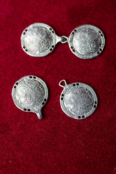 Wie so oft bei unseren mittelalterlichen Kostümen streben wir nach Perfektion selbst im kleinsten Detail. Und wenn wir sie nicht finden, kreieren wir sie von Grund auf neu. Die gründliche Recherche historischer Quellen vor der Entstehung unserer Wikinger-Kollektionen ermöglicht es uns, unsere einzigartigen Ornamente an alle möglichen Oberflächen, Größen und Materialien anzupassen und anzuwenden. Dieses Mal landete das Wikinger-Knotenmuster von ArmStreet in den Messingverschlüssen, mit denen Sie die verlorenen Verschlüsse an Ihren Wikinger-Kaftanen ersetzen oder Ihre mittelalterlichen Kostümprojekte selbst gestalten können.
