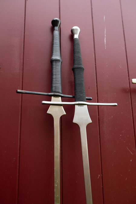 Die Vorgängerversionen dieses Feders waren bei den meisten Fechtern in der Ukraine sehr beliebt und hielten dem schnellen und aggressiven Stil der osteuropäischen HEMA-Szene stand, bevor leichtere Schwerter üblich wurden. Daher ist dieses Feder unserer Meinung nach ein perfektes Trainingsgerät für die meisten klassischen deutschen Langschwertfechter und die allgemeine HEMA-Trainingsszene. Wir haben uns bei der Entwicklung und dem Testen verschiedener Griffe größte Mühe gegeben – alle bestehen aus unserem charakteristischen, zweikomponentigen und besonders robusten Kunststoff, der einen hervorragenden Halt bietet. Die Oberfläche imitiert traditionelle Wicklungen wie Kordel, Seil oder Lederstreifen.