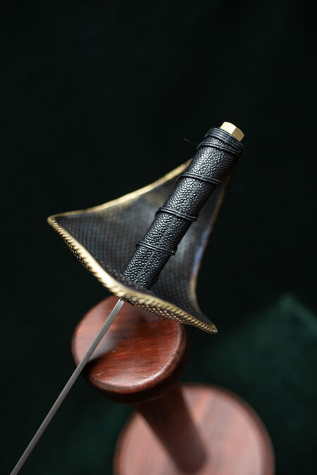 Der Hauptunterschied zu unserem Säbel „One Standard“ liegt in den Parierstangen, die zwei hervorragende Optionen bieten. Eine perforierte Parierstange ohne Rand ist eine besonders leichte Wettkampfversion. Bitte beachten Sie, dass wir aufgrund der extrem geringen Materialstärke des verwendeten gehärteten Federstahls keine Garantie auf diesen Handschutz übernehmen können. Er ist so konzipiert, dass er sich mit der Zeit abnutzt und Ihnen hilft, Ihr volles Leistungspotenzial auszuschöpfen. Für regelmäßiges Training empfehlen wir unsere massiven Handschützer. Alternativ können Sie sich für einen Handschutz mit Seilumrandung entscheiden, der gewichtsmäßig dazwischen liegt und bei geringerem Gewicht und ansprechender Optik äußerst elegant wirkt.