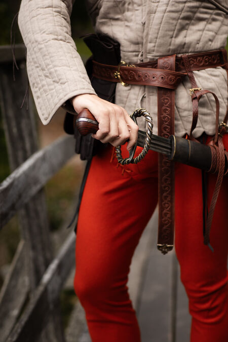 Dieses Schwert war in der Frührenaissance in Europa weit verbreitet und diente vorwiegend Bogenschützen und Pikenieren des Heiligen Römischen Reiches als Seitenwaffe. Es zählt aufgrund seines Designs, das die Vergangenheit des mittelalterlichen Europas mit der Eleganz der Renaissance verbindet, zu unseren Lieblingsschwertern.