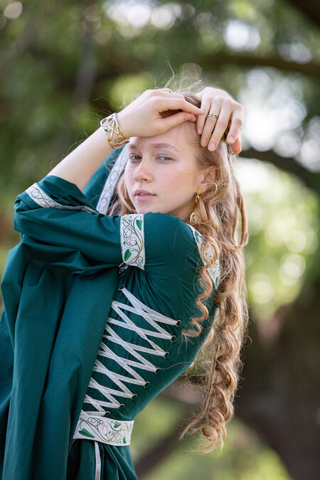 Mittelalter Kleid mit langen Ärmeln „Seerosen” | Grüne Popeline