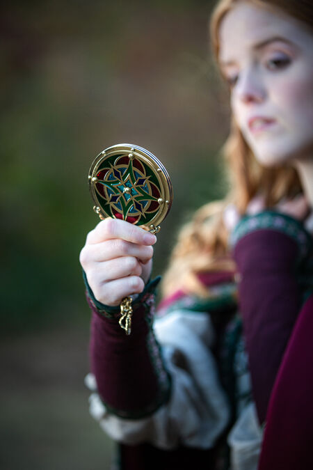 Heutzutage ist es unmöglich, sich vorzustellen, keine Gelegenheit zu haben, einen Blick auf sich selbst zu werfen. Deshalb finden Sie dieses wunderbare Stück in unserer Kollektion „Schlüsselhalterin” und vervollständigen Ihr Renaissance-Outfit. Wir hoffen, dass Ihnen die Arbeit unserer Schmiede gefällt, die bei diesem Spiegel auf jedes Detail geachtet haben.