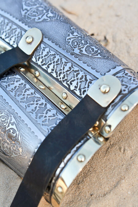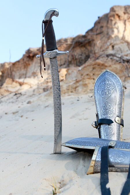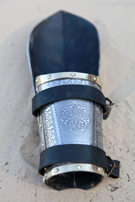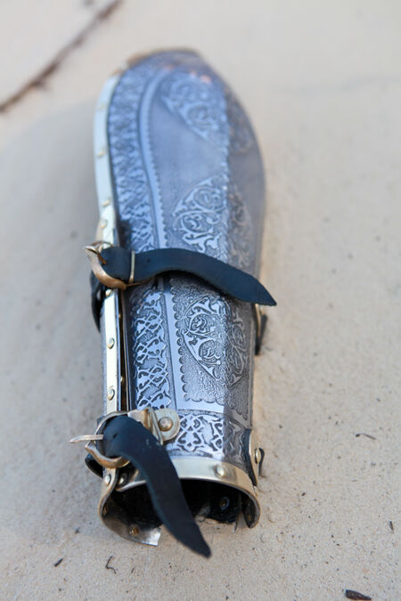 Dieser Armschutz ist ein Teil des Rüstungssets „Prinz des Ostens“ und basiert sich auf den Beispieles von XVI.-XVII. Jahrhunderten, Naher Osten die im Tower, London und Kreml Rüstkammer zu finden sind.