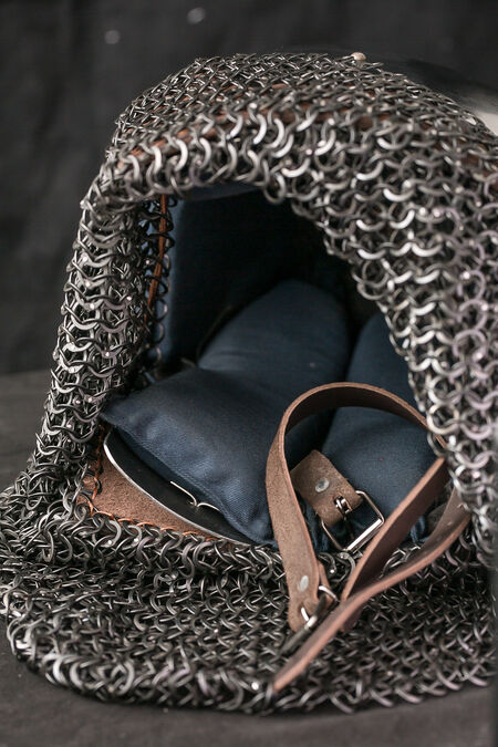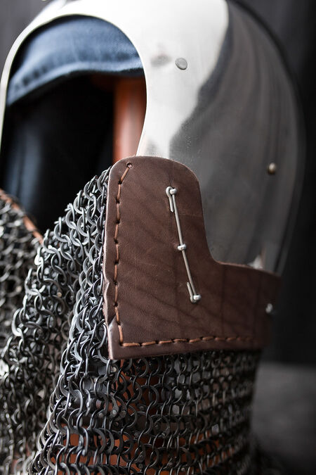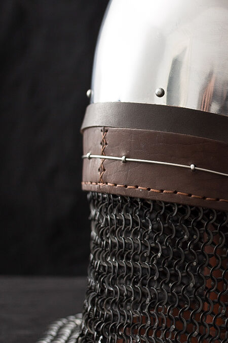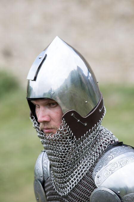 Dieser Helm passt hervorragend zu einer Vielzahl unterschiedlicher Rüstungstypen. Für eine einheitliche Ästhetik empfehlen wir jedoch, den Stil im allgemeinen Mittelalter (insbesondere im XIV. und XV. Jahrhundert) zu belassen. Wir finden, dass es mit einer Brigantine großartig aussieht. Wenn Sie auf der Suche nach etwas auffälligerem sind, haben wir auch eine identische Beckenhaube mit Gravur im Angebot.