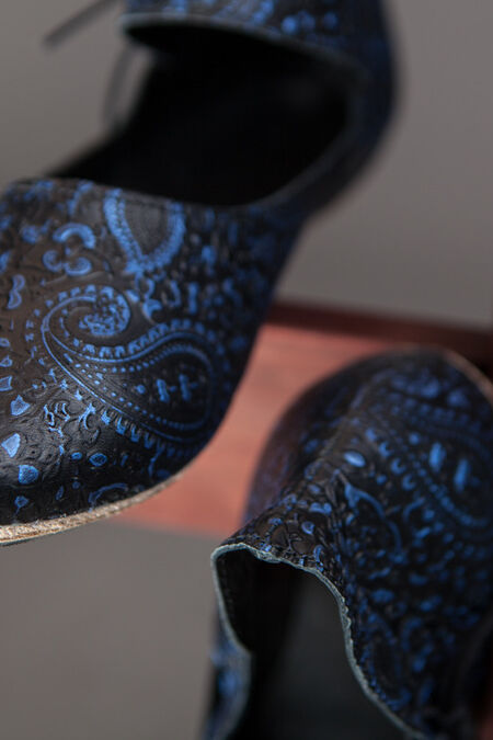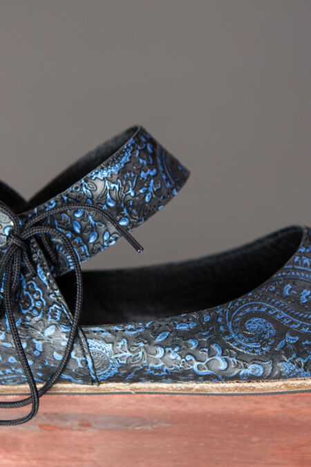 Sale: Mittelalter-Damenschuhe aus Leder | Blau auf Schwarz | EU-Größe 36