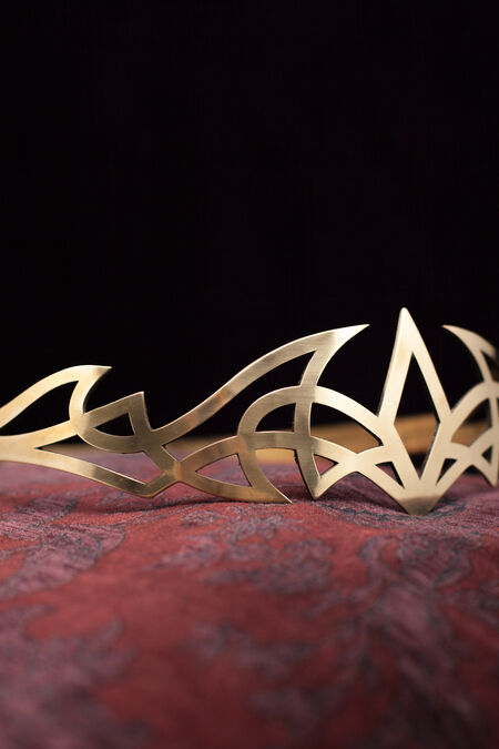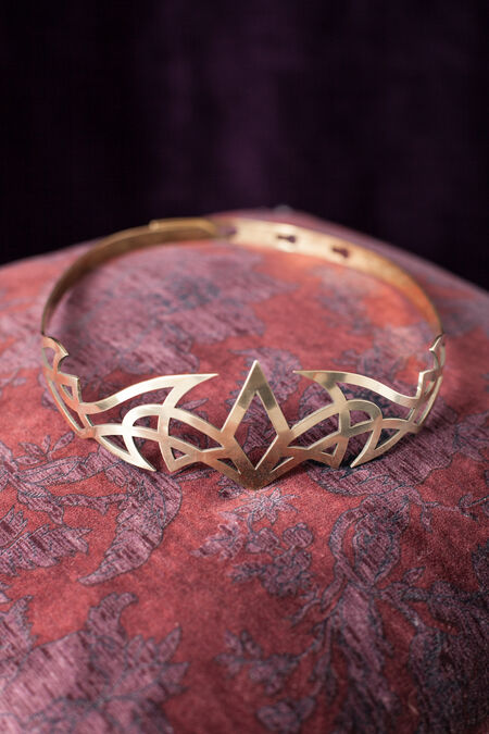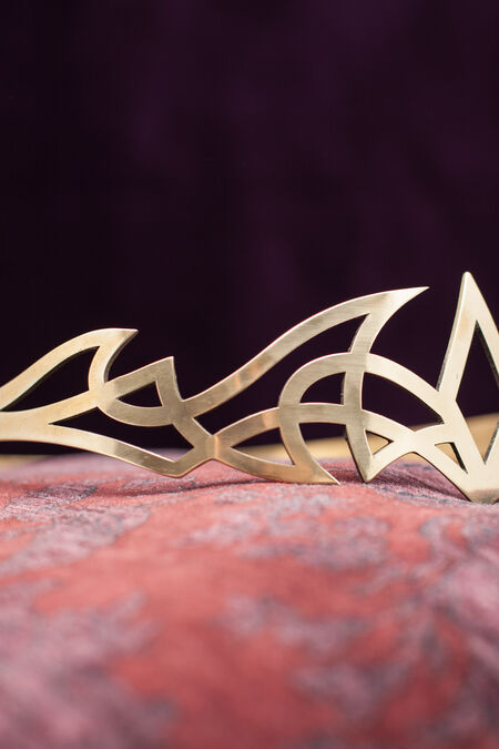 Dies ist ein Diadem aus Messing im Fantasy-Stil mit Elementen der keltischen Mustern. Wenn Sie dieses Stück des mittelalterlichen Schmucks haben, bedeutet das ein originelles Design und eine hochwertige Verarbeitung.