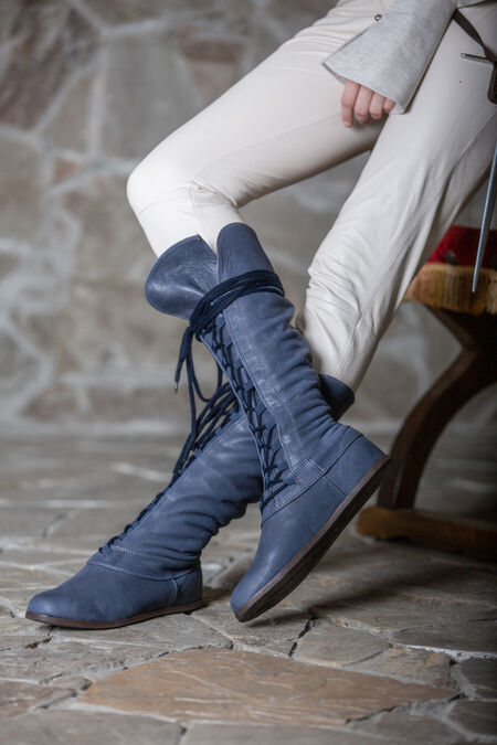 Sale Mittelalter Stiefel „Zauberwald”| Die letzten Stiefel aus mattblauem Leder sind im Angebot.
