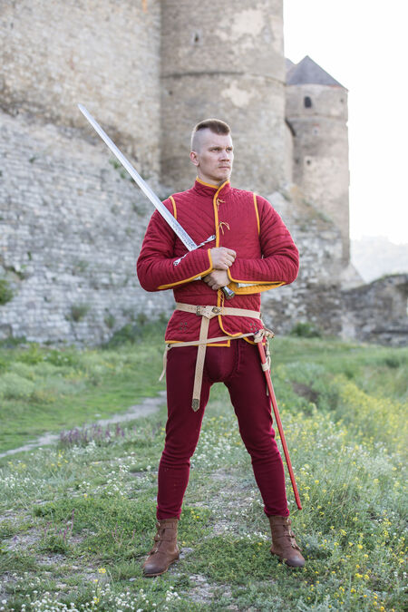 Bitte beachten Sie, dass die abgebildeten Waffen und zusätzlichen weißen Gürtel getrennt sind und Teil der dekorativen Waffensammlung von Königsmacher sind.