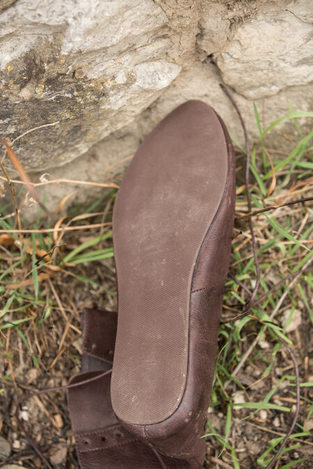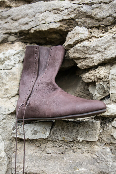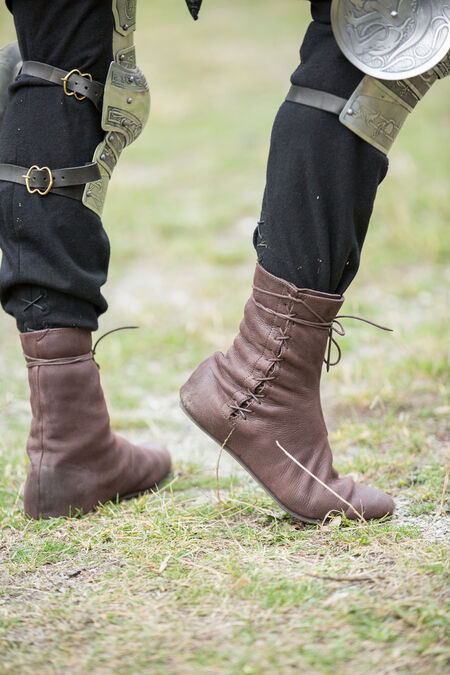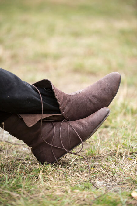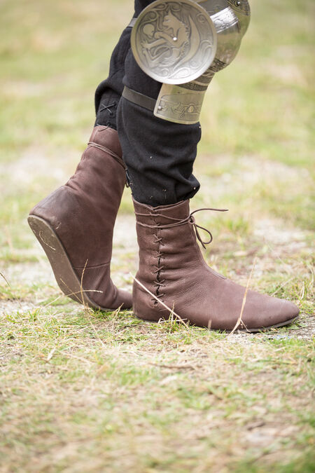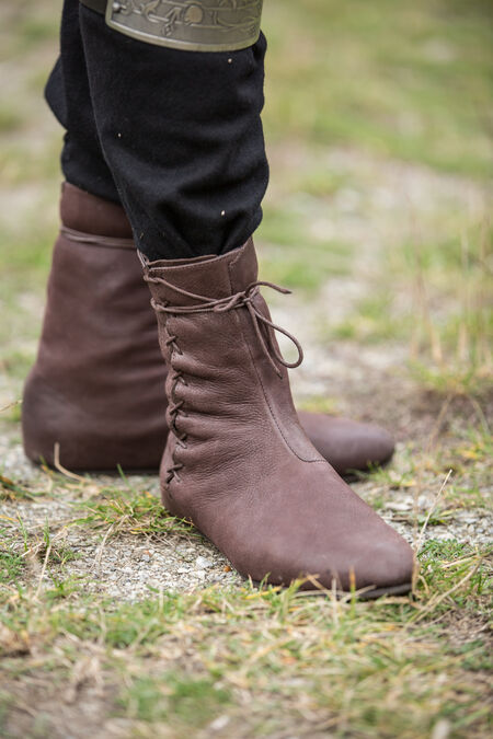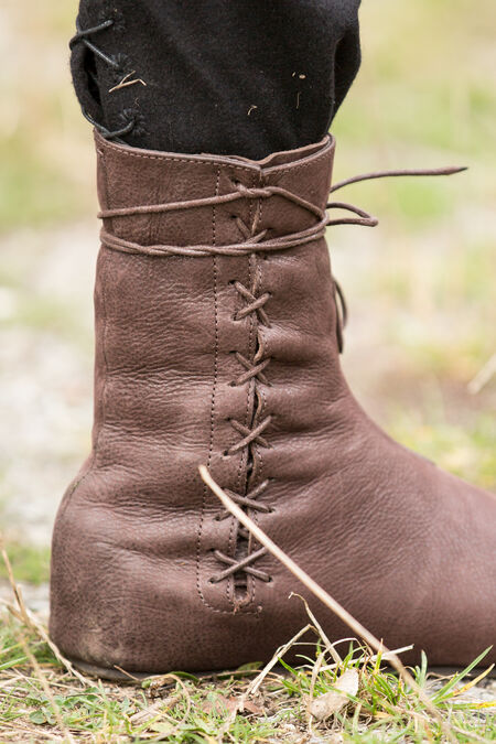 Sale: Mittelalter Fantasy hohe Schuhe | Verkauf der letzten Stiefel aus mattem, rotbraunem Leder