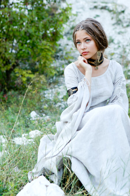 Sale: Mittelalter Tunika „Bogenschützin“ | Natürliche Baumwoll-Leinen-Mischung