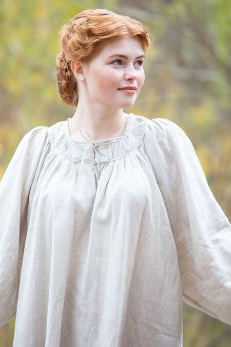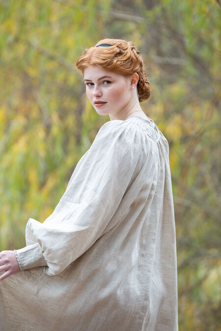 Dieser Chemise-Stil kann in verschiedenen Zeiträumen angewendet werden und eignet sich perfekt für SCA, Mittelalter Märkte, LARP und andere mittelalterliche Subkulturen. Es eignet sich auch hervorragend als Nachtkleid, da dieses feine Leinen in einer heißen Sommernacht angenehm weich und atmungsaktiv ist.