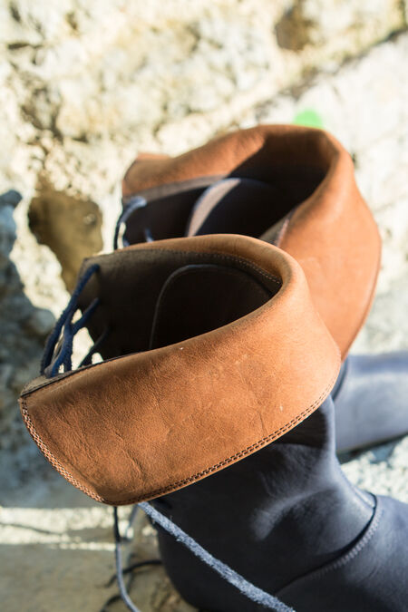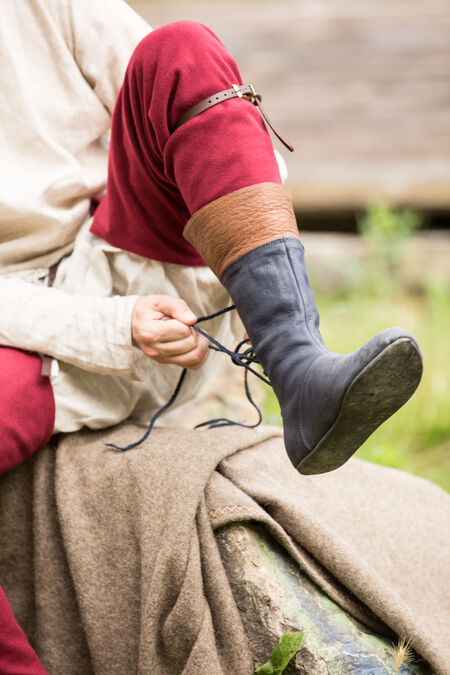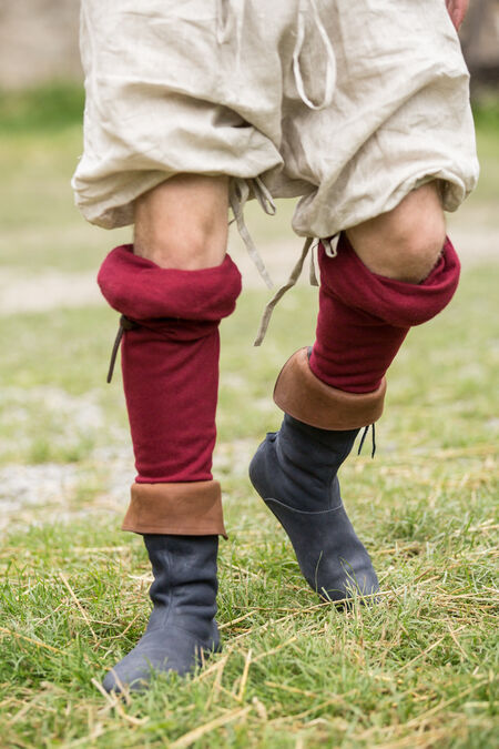 Die Stiefel bestehen aus weichem Leder. Die Flexibilität stellt sicher, dass sich Ihr Bein frei bewegen kann, wenn Sie irgendeine Art von Kampfpraxis haben, sei es Wrestling, Schwertkampf oder Bogenschießen.