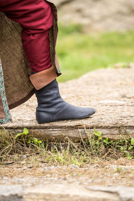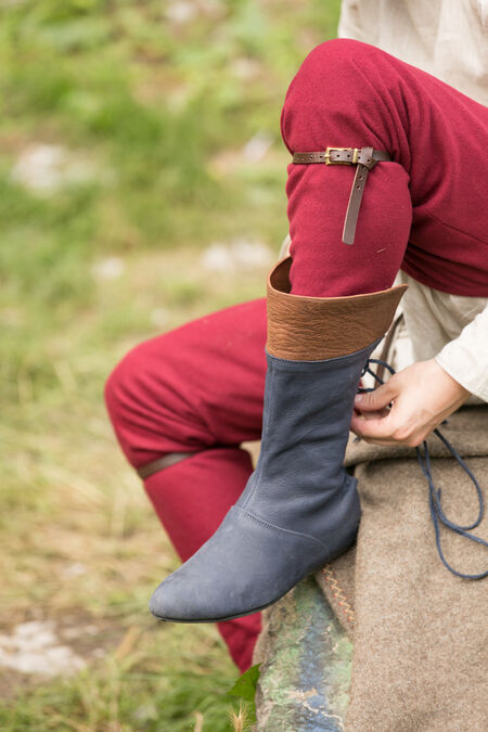 Bewundernswerte weiche Lederstiefel sind die perfekte Wahl, wenn Sie nach einer Ergänzung zu Ihrem mittelalterlichen Kostüm eines Ritters oder edlen Knappen suchen. Das Design dieser Schuhe basiert auf dem Stil des 15. Jhdt.
