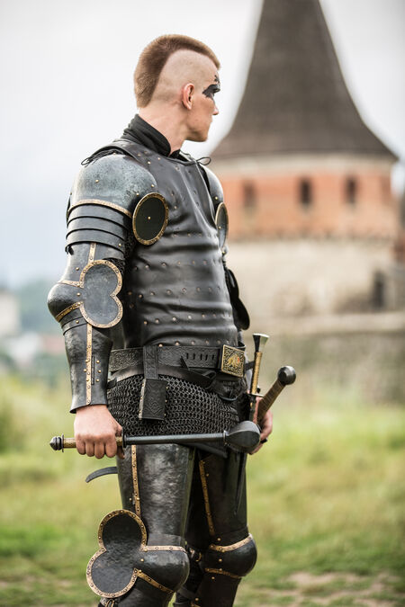 Wenn Sie sich in diese Brigantine verliebt haben und sich das gesamte Set ansehen möchten, können Sie sich unsere komplette Ritterrüstung „Eigenwilliger Ritter” ansehen.