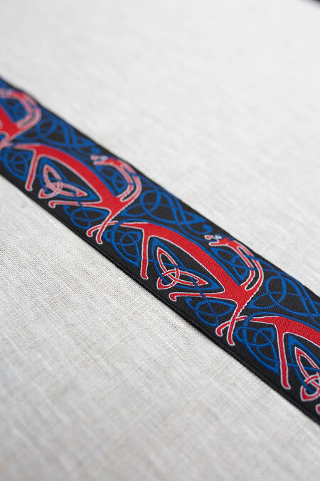 Diese breite Borte kann mit der schmalen keltischen Borte kombiniert werden, die ebenfalls meterware erhältlich ist. Wir sind gespannt, wie Sie sie in Ihren selbstgemachten mittelalterlichen Kostümen einsetzen werden!