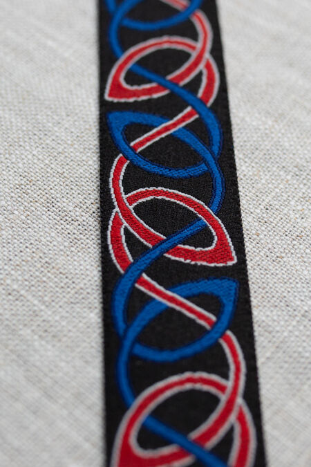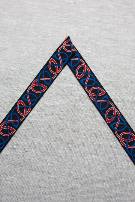 Wir konnten keine perfekte Borte für unsere ersten nordeuropäischen frühmittelalterlichen Kostüme finden, also haben wir unsere eigene entworfen! Unser talentiertes Designerteam hat gründlich keltische historische Funde recherchiert und dieses Wissen in ein authentisches, aber absolut einzigartiges Muster umgesetzt. Wer uns schon länger kennt, erinnert sich vielleicht an die Serien „Knyazhna Helga“ und „Knyaz Igor“, in denen diese Borten erstmals verwendet wurden.