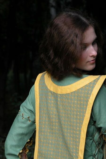 Das mittelalter Oberkleid ist aus reinem Leinen gefertigt. Das Muster ist eingewebt, was dem Kleid ein absolut authentisches Aussehen verleiht.
