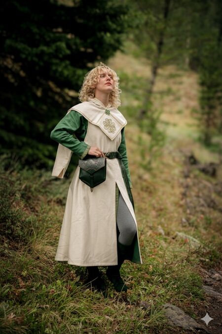 Ein Wappenrock ist ein typisches mittelalterliches Kleidungsstück, meist die zweite (oder dritte) Schicht der Kleidung. Er wurde traditionell über der inneren Kleidungsschicht (und auch über der Rüstung) getragen und entsprach dem modernen Pullover – eine perfekte Ergänzung und vielseitig einsetzbare Ergänzung der Reisekleidung.