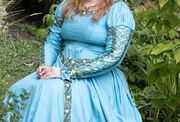 Dieses besondere Kleid wurde von mittelalterlichen Elementen inspiriert, aber insgesamt ist es Fantasie im Design. Wie bei den meisten unserer meistverkauften Kleidungsstücke haben wir unsere Lieblingsteile der Geschichte mit dem aktuellen Design verschmolzen, um etwas zu schaffen, das mittelalterlich aussieht, aber der modernen Figur schmeichelt. Ein breiter Ausschnitt weicht einem reich verzierten, plissierten Oberteil mit Schnürung an den Seiten, um sicherzustellen, dass Sie die bestmögliche Passform erhalten. Die Ärmel beginnen mit einem hohen Puff und sind darunter mit einer Schnürung zur Einstellung versehen. Der Rock des Kleides ist voluminös und fällt auf den Boden, und der gesamte Look wird durch eine schöne, passende Accessoires-Linie abgerundet.
