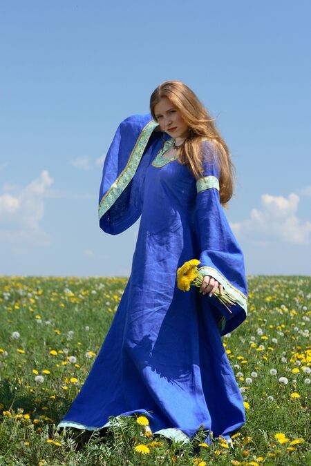 Sehr schlicht, einfach und elegant. Eine wunderschöne mittelalterliche Gewandung: mittelalter Kleid aus 100% Leinen im "Bliaud" Stil des 12-13 Jhdts das perfekt zu jeder Figur passt.