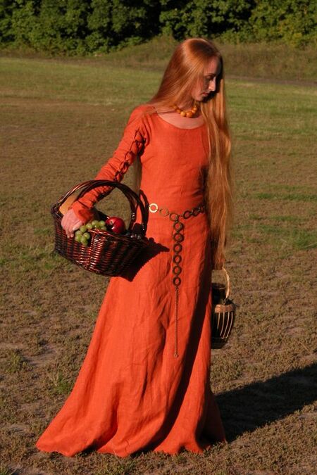 Dieses Kostüm ist unsere Version des mittelalterlichen Landkostüms. Sehr schlicht, einfach und elegant. Ein wunderschönes Set bestehend aus einem mittelalterlichen Kleid und Surcoat aus 100% Leinen im Stil des mittelalterlichen Englands oder Schottlands, das perfekt zu jeder Figur passt.