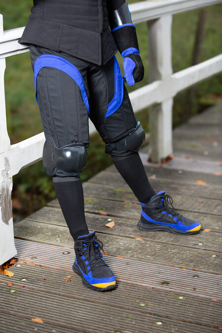 Viele Fechter tragen ihre Schienbeinschoner in Strümpfen, was eine kleine Umstellung erfordert. Zwar gibt es diverse Kniestrümpfe auf dem Markt, doch die meisten Sport-Kniestrümpfe bieten eine gewisse Kompression und lassen wenig Platz für Schienbeinschoner.