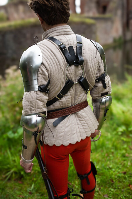 Das einfache, aber bewährte Design bietet guten Schutz für deine Schultern und deckt mehr als genug für die Grundrüstung ab. Dank der Segmentierung und des geringen Gewichts eignen sich diese Schulterpanzer perfekt für praktisch alle Waffen und Schwertkampfsituationen, von SCA-lastigen Harnischfechten über HEMA-Harnischfechten bis hin zu Live-Steel-Turnieren und LARP.