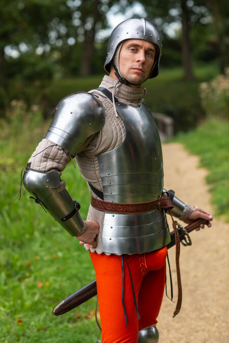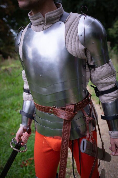 ArmStreet ist vor allem für seine einzigartigen, außergewöhnlich präzise designten Rüstungen bekannt, die zwischen praktischer Ausrüstung und Kunstwerken angesiedelt sind. Ursprünglich bedienten wir hauptsächlich die Bedürfnisse der SCA und der gepanzerten Kampfszene. Daher haben wir uns entschlossen, ein einfaches, funktionales Rüstungsset zu entwickeln, das sich mit wenigen Anpassungen für Turniere im Schwertkampf oder HEMA-Harnischfechten modifizieren lässt und gleichzeitig eine gute Wahl für gepanzerte Charaktere im LARP darstellt – insbesondere für unsere Kunden, die eine „echte“ Kampfrüstung bevorzugen.