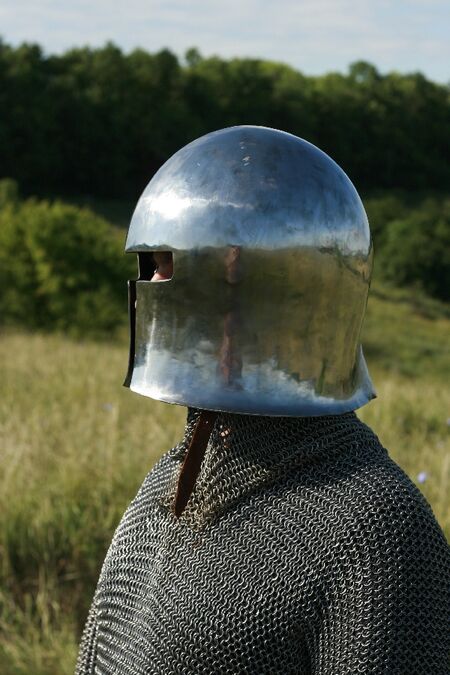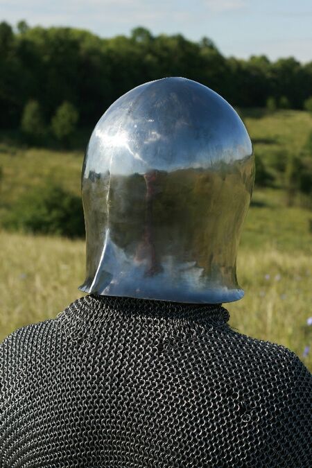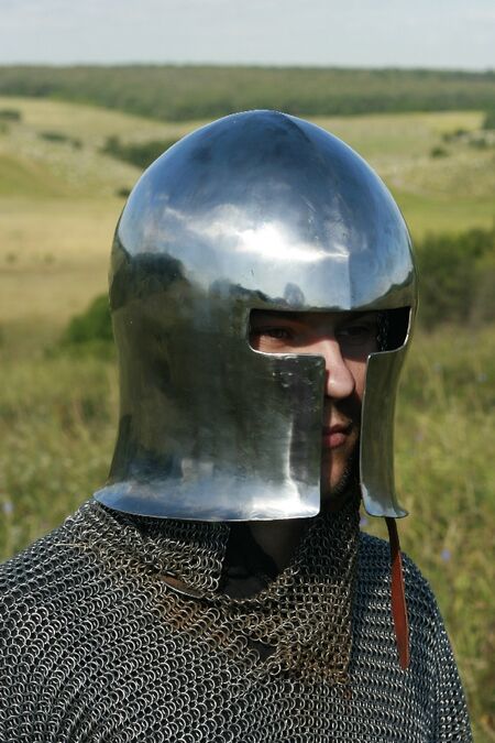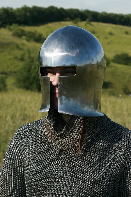 Dieser Helm wird in Übereinstimmung mit dem ursprünglichen, mittelalterlichen Design hergestellt. Dieser Helm wird aus 2 mm starkem, kaltgewalzten Stahl. Authentischer Inlay ist inklusive.