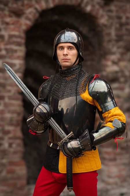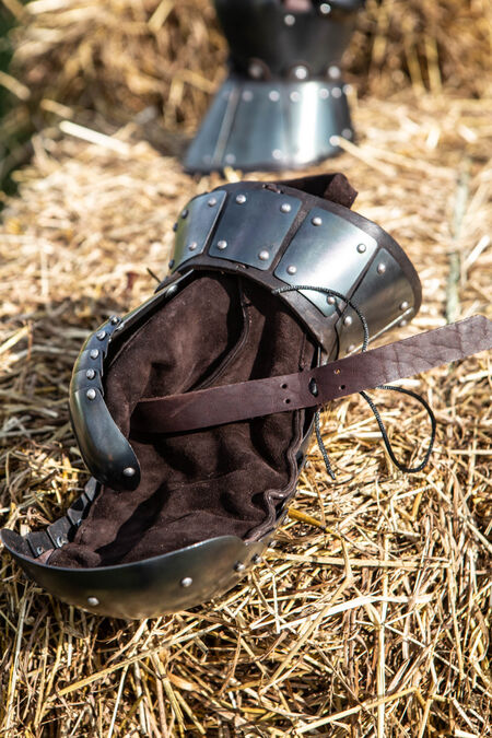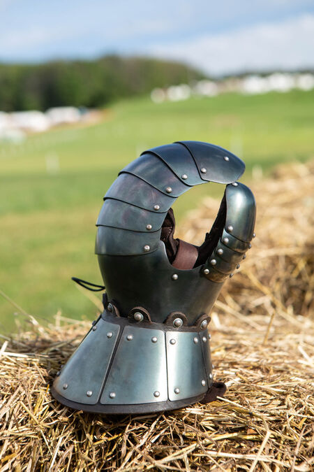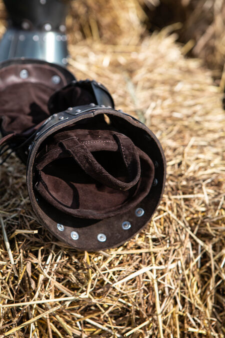 Gute Wahl für Training und mittelalterliche Kämpfe. Dieses ziemlich einfache Design ist typisch für das frühe Mittelalter - im normannischen oder slawischen Stil. Dieses Modell verfügt über eine fortschrittliche Daumenform: Nur eine geringfügig tiefere Bewegung der Fingerspitzen dieser Version führt zu einer geschlossenen Form, die Ihren Daumen vor einem frontalen Schlag schützt. Wenn Sie zuverlässige Turnier- oder Trainingshandschuhe benötigen, ist dieses Paar die perfekte Wahl. Als einer der Bestseller in dieser Kategorie lieferte die Anzahl der von ArmStreet verkauften Lamellenpanzer Handschuhen eine Menge wertvoller Rückmeldungen von Kämpfern aus aller Welt, die jahrelanger Benutzererfahrung entsprachen. Dies trägt zur ständigen Verbesserung von Funktionalität und Ergonomie bei.