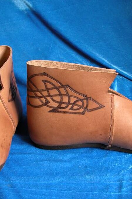Diese Schuhe sind eine hervorragende Ergänzung zu jedem mittelalterlichen Kostüm oder Gewand. Sie werden in Übereinstimmung mit den ursprünglichen Vorlagen gefertigt. Die Originale wurden im Jahr 1994 bei „Rurikovo gorodische“, Novgorod, einer der ältesten und stärksten Zitadellen Nordeuropas, gefunden.